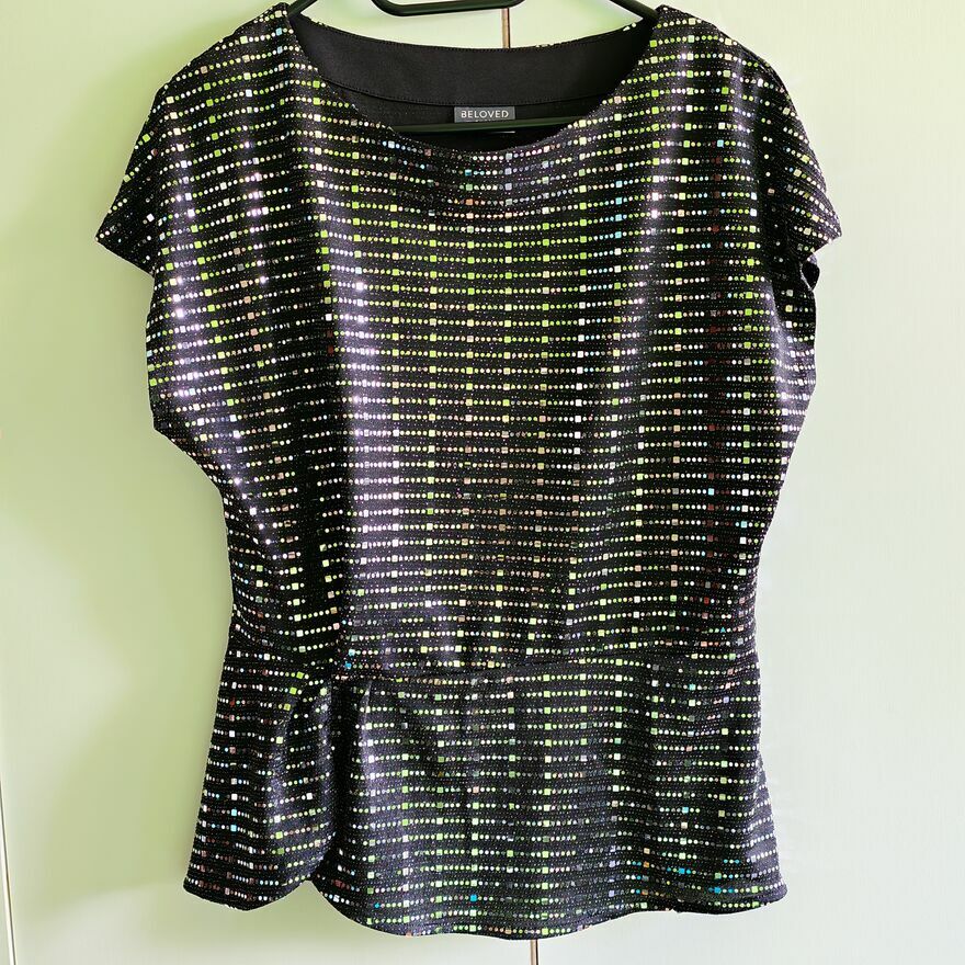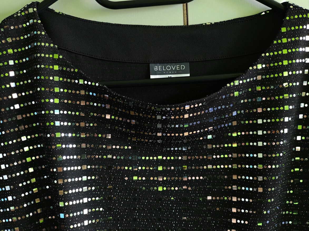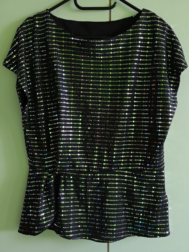 Piękna bluzka z krótkim rękawem ,,BELOVED Woman" na wyjątkowe okazje, imprezy, bale, robiąca oszałamiające wrażenie w zmiennym świetle, mieniąca się kolorami w lampach fleshy , nowoczesny design i krój, zwracająca na siebie uwagę, dedykowana dla osób które chcą być zauważone i zapamiętane na balu.Produkt fabrycznie nowy.
