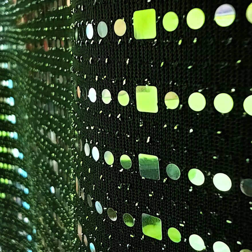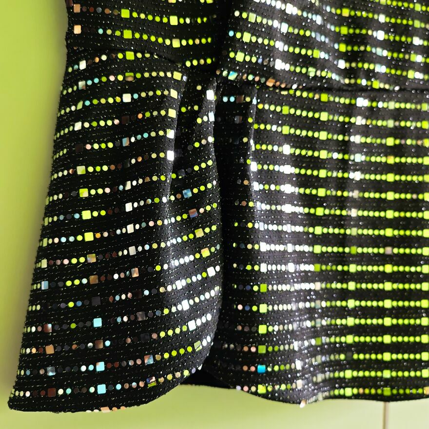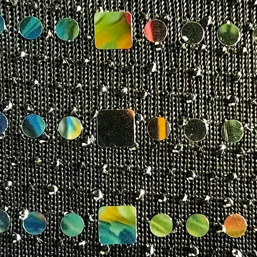 Materiał cienki, na zewnątrz w czarne perełki i mieniące się blaszki.