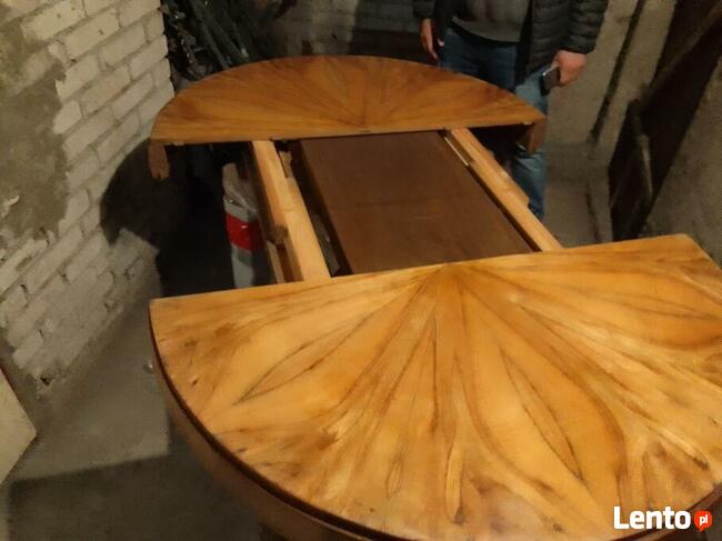 Okrągły stół w stylu Biedermeier, prawdopodobnie wykonany z orzecha lub innego szlachetnego drewna, fornirowany i ...