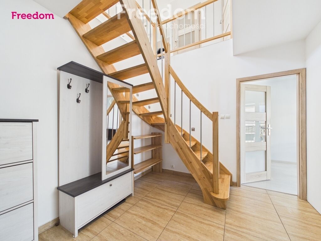 Mieszkanie ma rozkładowy, dwupoziomowy układ i składa się z