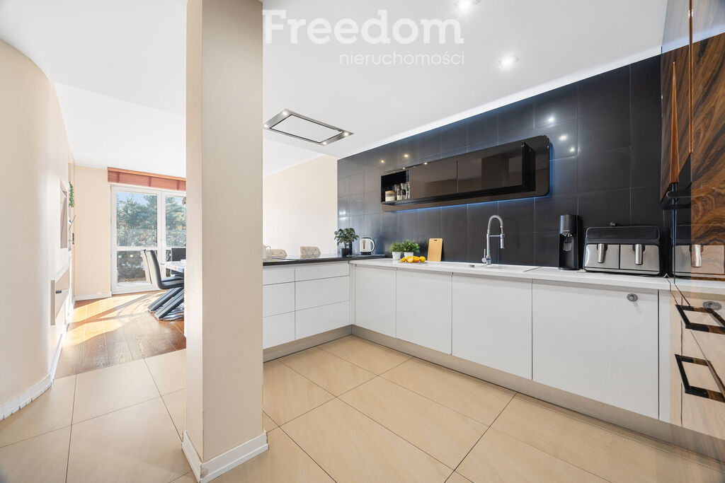 Salon połączony jest z nowocześnie urządzoną kuchnią oraz