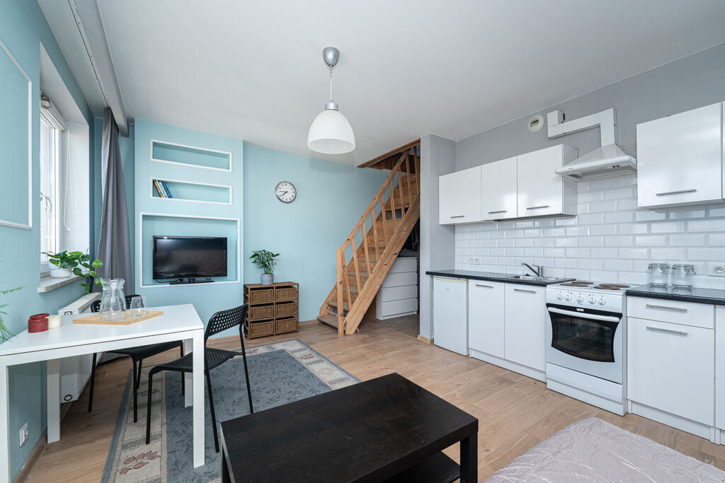 Jest to zadbane, dwupoziomowe mieszkanie o powierzchni 34 m²