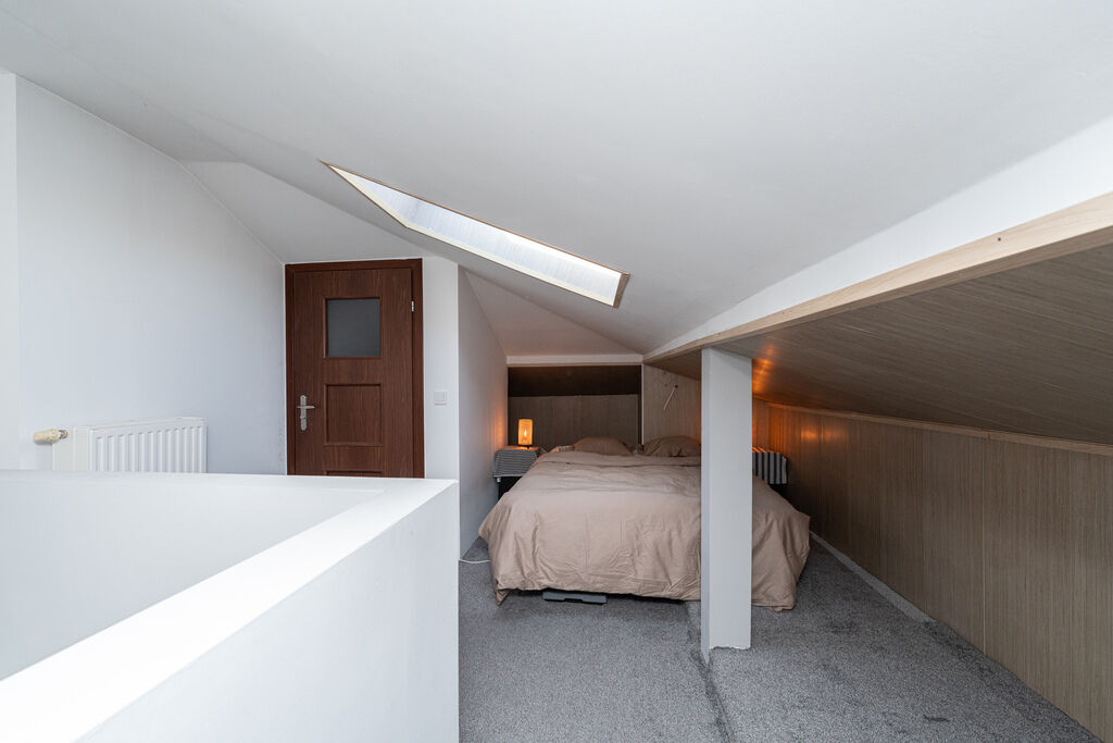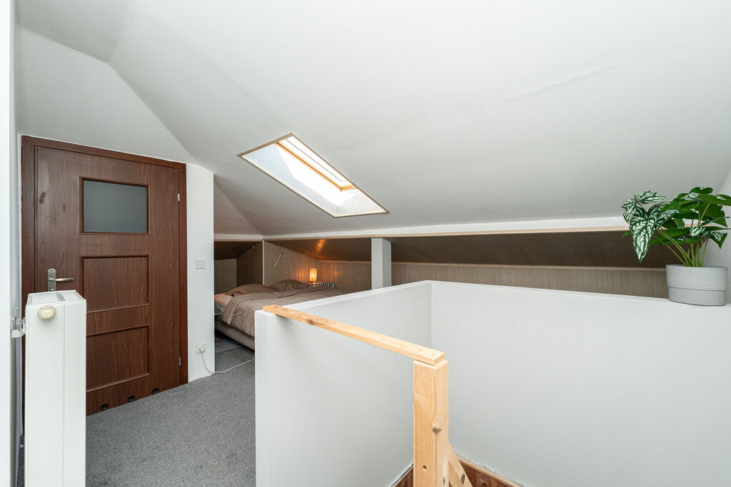 nowoczesnym stylu z wieloma punktami świetlnymi. Na poddaszu znajduje