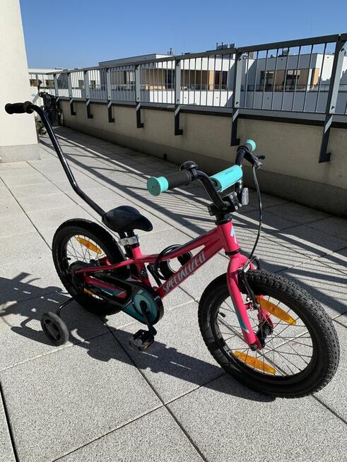 Sprzedam rower dziecięcy b-twin 16'' stan bardzo dobry. W zestawie kółka do nauki jazdy. Lok W-wa tel 516104366