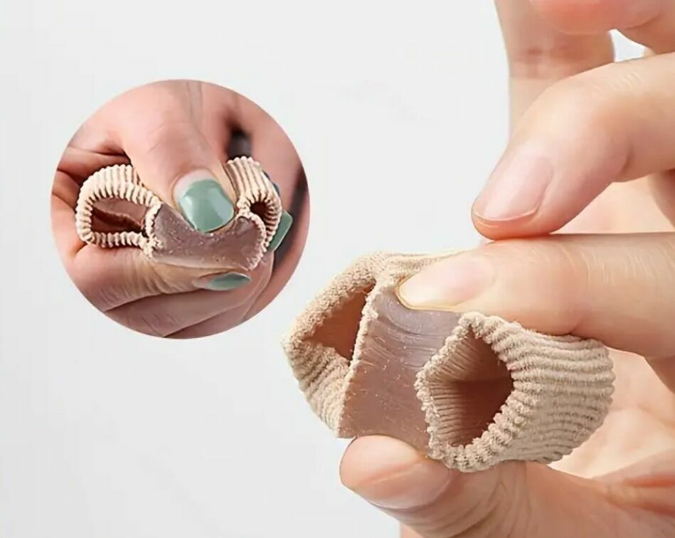 Dwa separatory na odpowiednie rozmieszczenie palców stopy, wygodne noszenie na stopie, zapobiegają haluksom i poprawiają skrzywienie palców do prawidłowego ustawienia, niwelują ból stopy podczas chodzenia dzięki prawidłowemu ustawieniu palców.Wykonane z rozciągającego się materiału z żelowym klinem w środku.