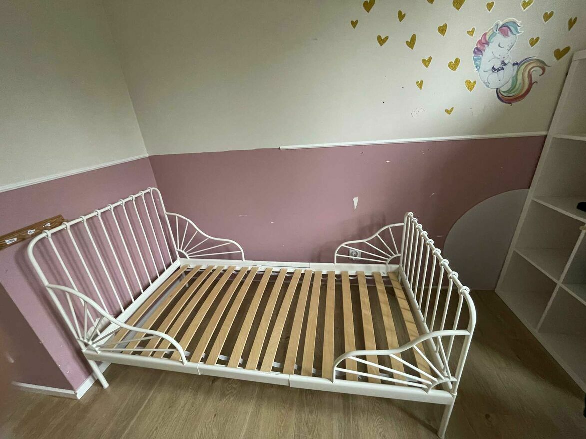 IKEA łóżko dziecięce rozsuwane Ikea Minnem. Rośnie razem z dzieckiem.Wymiary 130x80cm, 170x80cm lub 80x200cm. Kolor biały. drewniane dno sprawne. Po złożeniu na maksa, może w nim spać małe dziecko, ponieważ ma boczki. Posłuży jeszcze kilka lat.